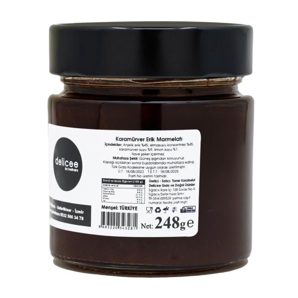Karamürver Erik Marmelatı, antioksidan zengini karamürverin bağışıklık güçlendirici özelliklerini, eriğin doğal lif ve vitamin içeriğiyle birleştiriyor. Sindirimi destekleyen ve enerji veren bu marmelat, hem sağlık hem de lezzeti bir arada sunar. Katkısız içeriği sayesinde sağlıklı beslenmeyi tercih edenler için ideal bir üründür. Meyvelerin doğallığını bozmadan hazırlanmış bu marmelat, sofralarınıza sağlık ve zindelik getirir.